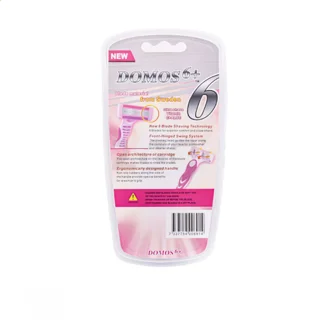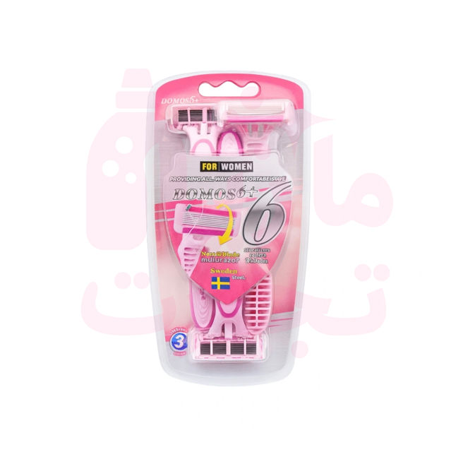 خودتراش دوموس DOMOS شیش لبه مناسب بانوان، بسته ۳عددی شامل ۳ عدد خودتراش با تیغههای شش لبه برای اصلاح دقیق و نرم. طراحی ارگونومیک و مناسب پوست حساس بانوان، تجربهای راحت و ایمن در اصلاح روزانه را فراهم میکند.
