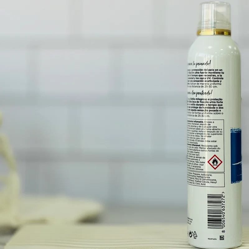 اولین چیزی که در برخورد با این محصول جلب توجه میکند، طراحی مدرن و حرفهای آن است. قوطی فلزی با رنگهای طلایی و سفید، حس لوکس بودن را القا میکند. نوشتههای واضح و برجسته روی بستهبندی، اطلاعات کلیدی مانند "روغن جوجوبا" و "تثبیت فوقالعاده قوی" را بهراحتی در اختیار مصرفکننده قرار میدهد. این طراحی نه تنها زیباست بلکه کاربردی نیز هست؛ اسپری بهراحتی در دست قرار میگیرد و پاشش یکنواختی دارد.