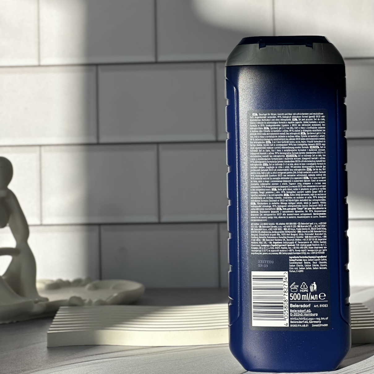 بطری این ژل دوش با رنگ آبی تیره و لیبلهای جذاب، حس قدرت، طراوت و پویایی را منتقل میکند. طراحی ارگونومیک آن باعث میشود بهراحتی در دست قرار گیرد و در محیط حمام جلوهای خاص داشته باشد. حجم ۵۰۰ میلیلیتری محصول، استفادهی طولانیمدت را تضمین میکند و برای مصرف روزانه کاملاً مناسب است.
