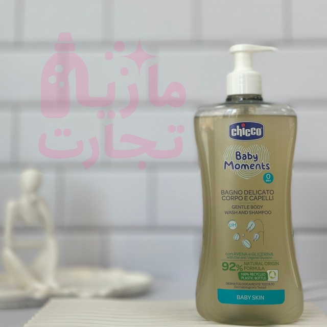شامپو سر و بدن بچه چیکو CHICCO BABY MOMENTS با ۹۲٪ فرمولاسیون طبیعی حجم۵۰۰میل