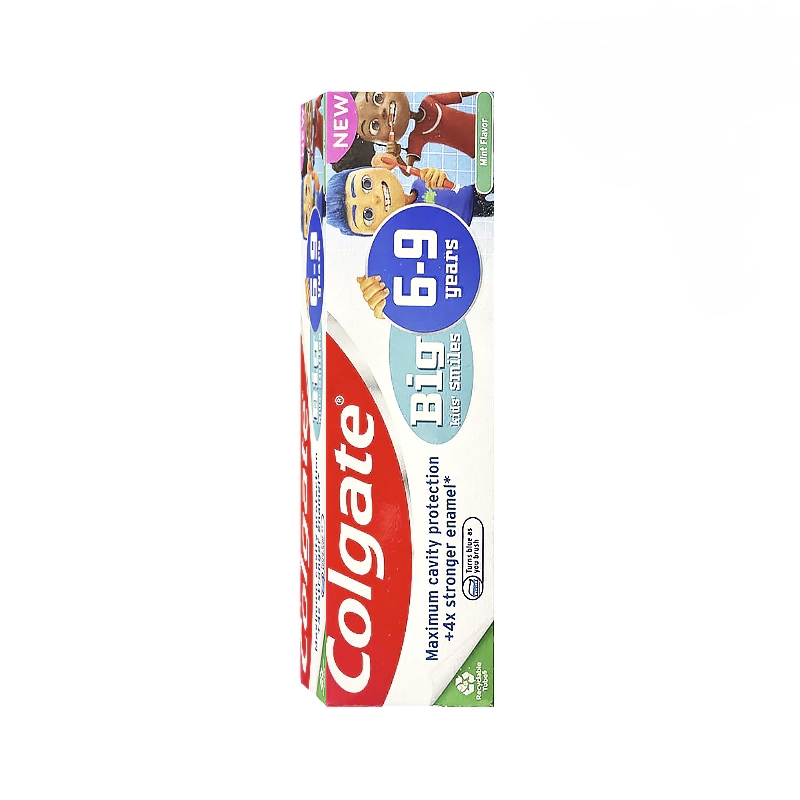 اولین چیزی که در برخورد با این محصول جلب توجه میکند، طراحی بستهبندی آن است. استفاده از رنگهای شاد، شخصیتهای کارتونی و فونتهای کودکانه باعث میشود کودک بهصورت خودجوش به سمت این محصول جذب شود. عبارت "Big kids' smiles" روی بستهبندی، حس استقلال و بزرگ شدن را در کودک تقویت میکند و او را تشویق به استفاده منظم از خمیردندان مینماید. 😁🎒